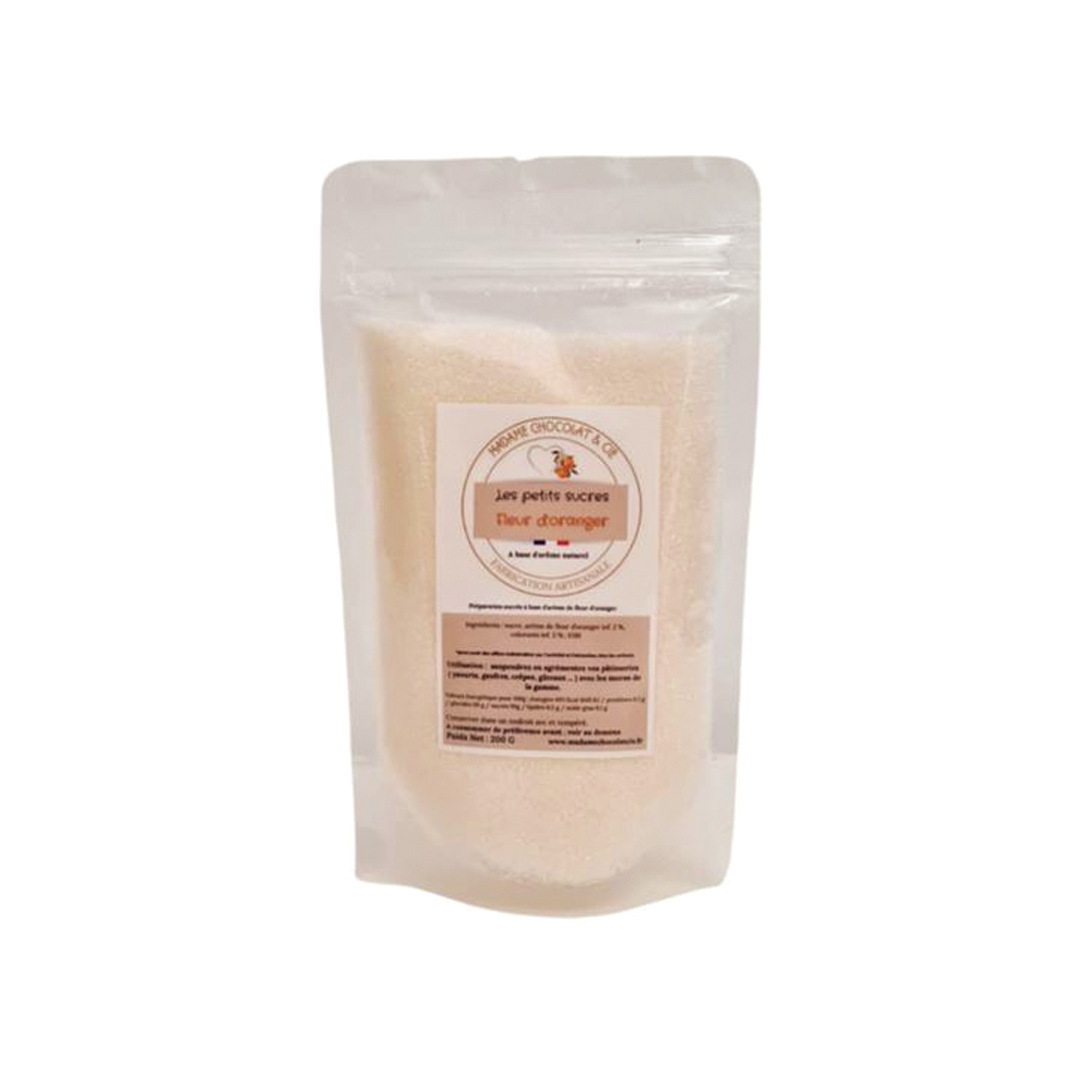 Ingrédients : sucre, arôme naturel de fleur d’oranger inf. 2 %, colorants inf. 2 %.