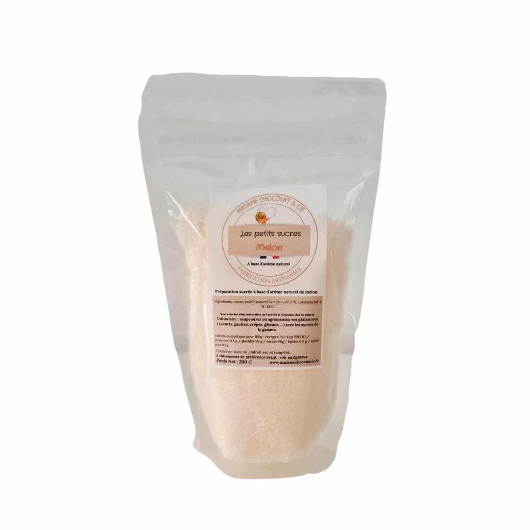 Ingrédients : sucre, arôme naturel de melon inf. 2 %, colorants inf. 2 % : E110